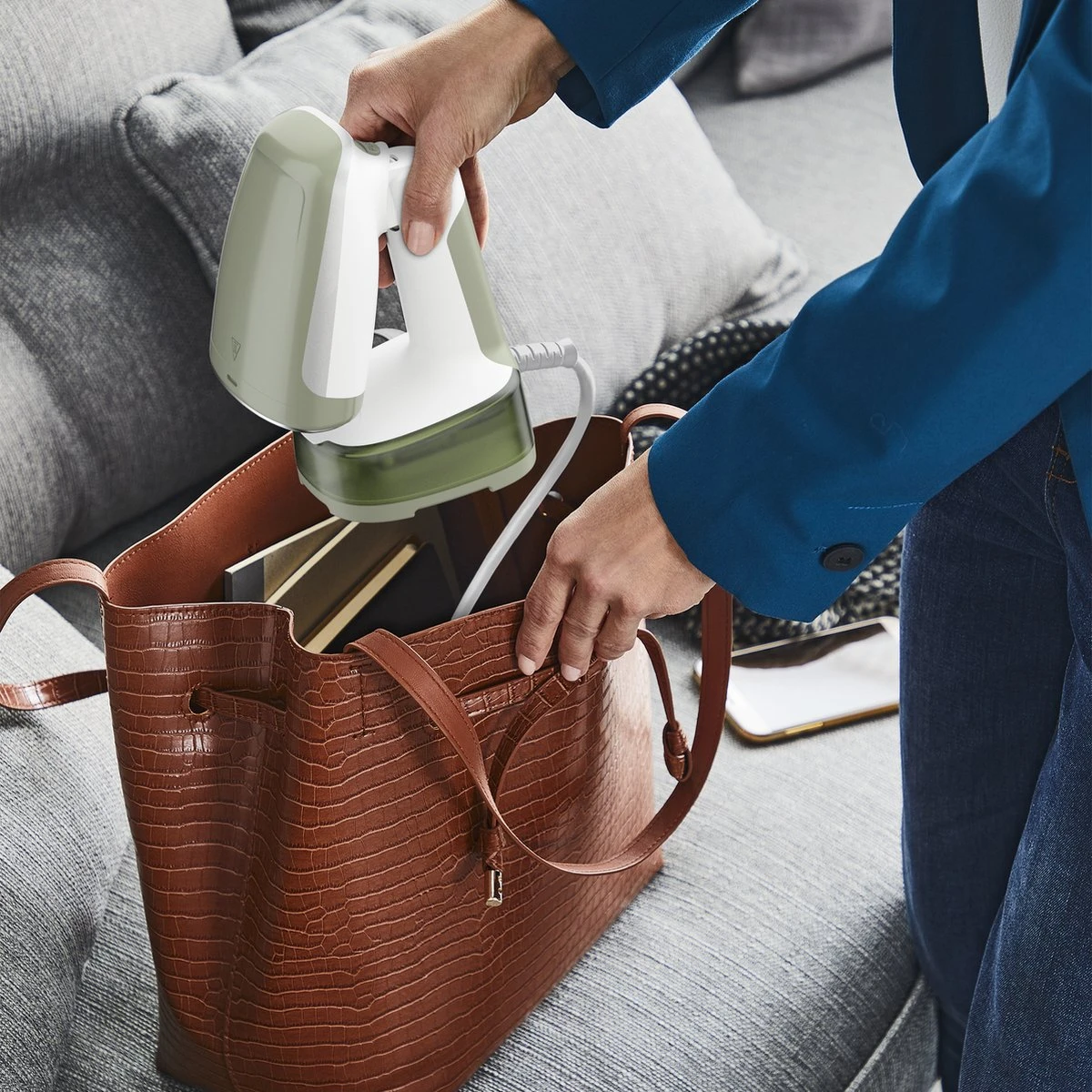 De snelste hand kledingstomer van Tefal met een ultra-compact design. De kledingstomer is perfect voor op reis en in het dagelijks gebruik. De Access Steam Pocket DT3053 is een ultra-compacte kledingstomer die je kledingverzorging elke dag gemakkelijk maakt. De exclusieve opvouwbare kop zorgt voor ultiem gebruiksgemak, terwijl het lichtgewicht frame zorgt voor probleemloos stomen. Bovendien is hij 2x kleiner dan voorgaande modellen, wat betekent dat opbergen en reizen nog makkelijker gaat! Geniet van de razendsnelle opwarmtijd van slechts 15 seconden. Perfect voor snelle last-minute touch-ups om er op je best uit te zien.